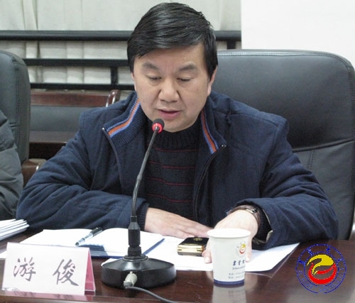 图为党委书记游俊作重要讲话 苏卫平摄