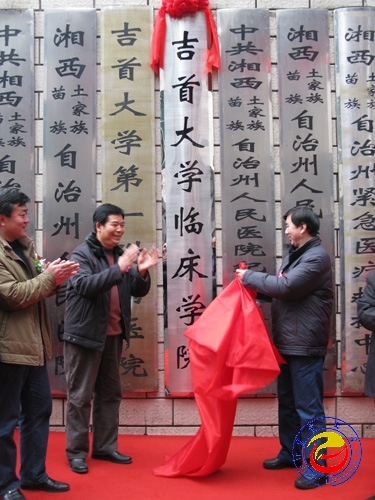 随后,与会领导嘉宾来到州医院大门口参加揭牌仪式。在欢快的乐曲声和喜庆的鞭炮声中,胡万凤、游俊为必赢nn699net官网临床学院成立揭牌。