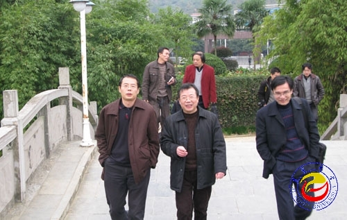校长助理黎奇升陪同客人参观校园 苏卫平摄影