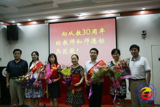 校党委书记游俊、校长李民与从教三十年教师合影 摄影 成美