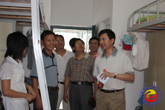 游俊先后来到学生食堂楼、行政办公楼、教学楼、学生宿舍楼实地考察,并亲切地和工人、教师、学生交谈。当游俊走进一学生寝室时,看到外语系的两个女学生正在享受免费上网。便询问他们对于新校区的住宿条件是否满意?学生们回答说,比老校区的条件好多了,设计合理、使用方便。当学生说到室外环境不是很好时,游俊答复她们,学院会很快进行校园绿化工作,到10月中旬的庆典活动就会大为改观,请同学们放心!