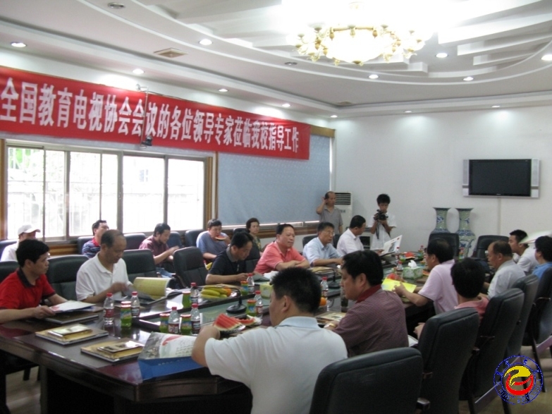 本网讯(记者 苏卫平)7月20日下午,中国教育电视台党委书记、副台长黄百炼,中国教育电视协会会长宋成栋率全国各省、市教育电视台负责人莅临必赢官网指导工作。校党委委员、副校长张建永,校办主任戴林富等与来宾在校办二会议室进行座谈,并陪同黄百炼一行参观了黄永玉艺术博物馆。