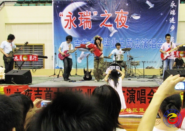 一个并不华丽的舞台,下面挤满了听众,他们来自不同院系、不同年级,有毕业生,也有肄业生。歌声中,台下的听众们在不断挥舞着手臂,和着音乐的节拍。非乐队、零乐队、红乐队、杯子乐队交替激情上演。