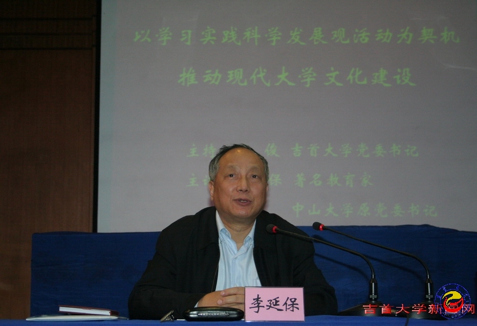 李延保在报告中对作为地方性大学应该怎样把学习实践科学发展观推动现代大学文化建设变为现实,怎样珍惜这次学习机会,用科学发展观解决问题进行了精辟阐述。他在报告中还谈到,大学教师最宝贵的是时间,学校应该多给教师教学及科研时间。他还列举中山大学和浙江大学的典型案例,阐述了中山大学定位“研究型大学”的目的。李延保还着重强调了校园文化的重要性,他指出,数据指标是学校的硬实力,校园文化是软实力,而现代大学的校园文化建设正有待加强。他强调指出,加强人才素质教育是大学工作的重点,并且要把这种素质教育内化到学生的生活、学习当中去。他还指出,要从不同思维角度提出不同的文化精神,大学文化传统的传承应成为学校永久的任务。