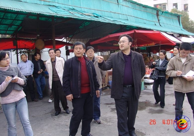 图为曹校长在学校菜市场了解食品卫生安全情况 摄影 寇思琴