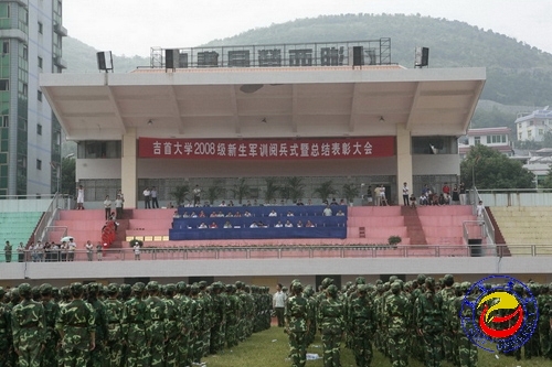下午3点,2008级新生军训汇报演练暨表彰大会正式开始。校领导游俊、李民、张建永、李克纲、曹晓鲜、田国祥、赵鹤平、黎奇升、钟海平,吉首市武装部部长文飞上校以及学校各部门、各学院相关负责人出席了表彰大会。会议由副校长张建永主持。