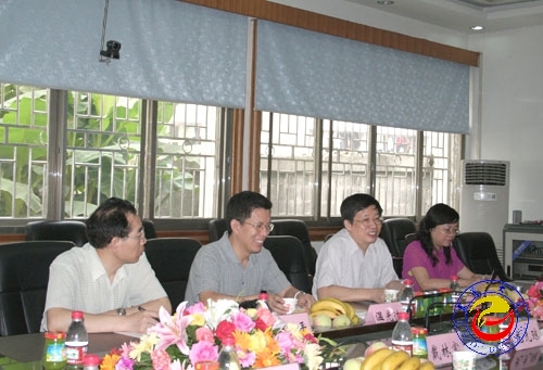本网讯(记者张彦 实习记者刘贤明 林展翅)6月6日,中山大学副校长许家瑞教授及人事处处长骆腾、设备与实验室管理处处长温光浩、化学国家级实验教学示范中心主任陈六平一行四人来必赢官网考察交流。必赢官网党委副书记、校长李民及相关部门负责人热情接待了许家瑞一行,并就人事、设备实验管理、化学实验教学中心建设等工作在校办二会议室进行了交流和探讨,其间还一同参观了化学实验教学中心、黄永玉艺术博物馆和校园。