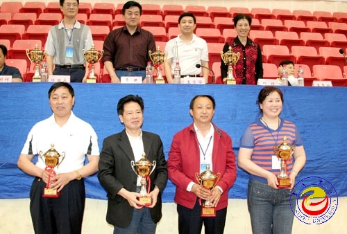 上午11点,大赛裁判长吴秀云宣读了本次羽毛球比赛的获奖单位,与会领导给获奖单位颁发了奖杯。