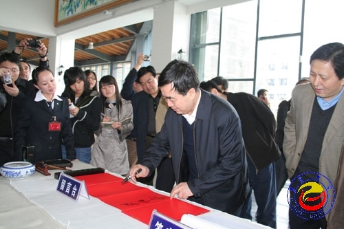 欧阳淞副部长在黄永玉艺术博物馆签字留念 摄影 洪波